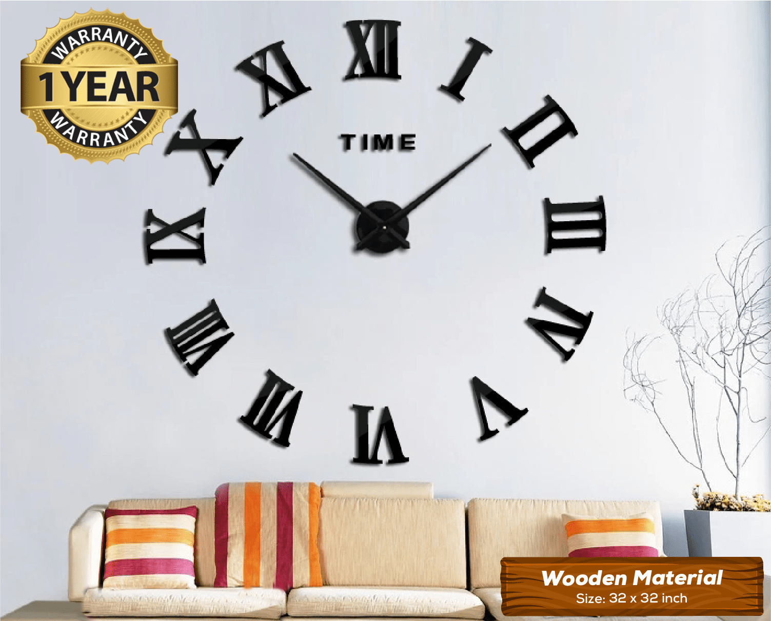 LARGE SIZE WOODEN DIY CLOCK WITH 12 INCHES NEEDLES